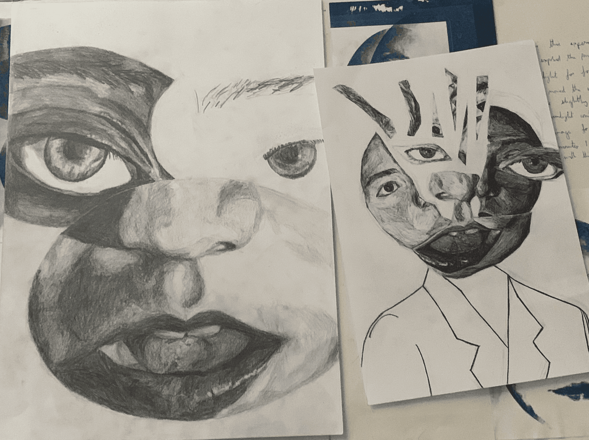 an archive of sorts, featuring old a-level collage and sketchbook pages (A* awarded project entitled 'fragments') -